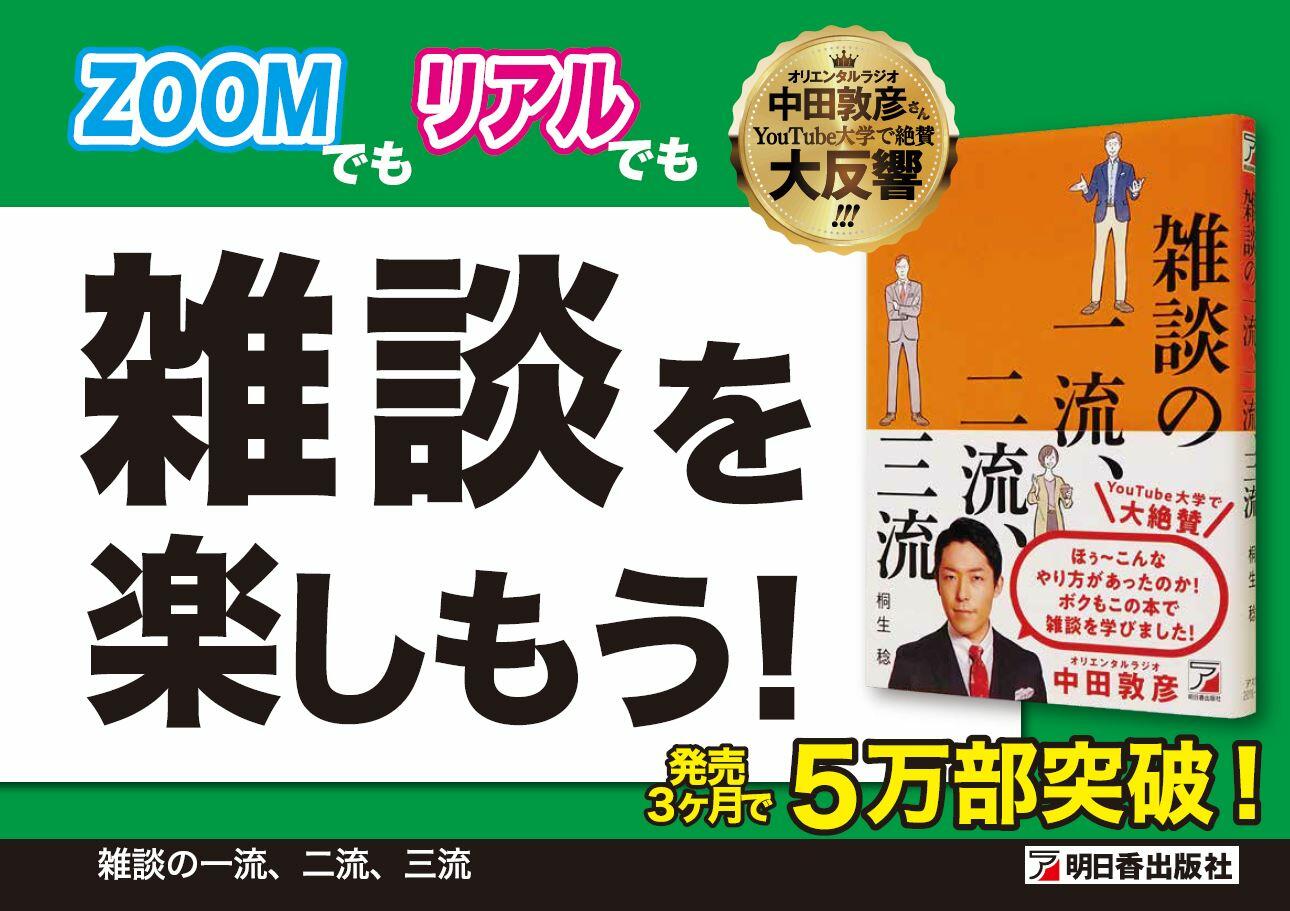 書店に向かった目的とは異なりますが、普段から雑談力を上げたいと考えていたこともあり、雑談力を極める第一歩への教科書のように読めると思ったためです。一流、二流、三流の中で、今の私はどこにあたるのか、どうしていけばよいのかを考えながらも読むことが出来ると思いました。
