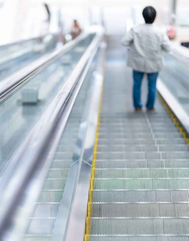 ターミナル駅や最近開通した新線では、地下深い所にホームがあるためか、数フロア分を貫くエスカレーターをよく目にします。また、「このエスカレーターはスピードを速めています」の表示ではたしかに早足にまさる高速運行。