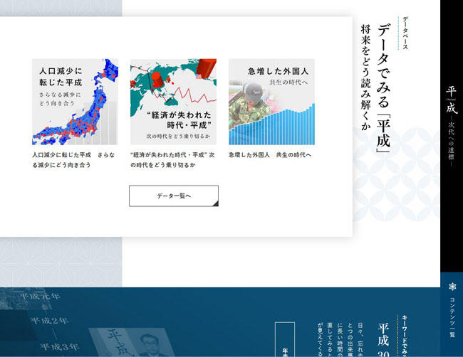 さて、みなさんにとっての平成はどんな時代だったでしょうか。NHK特設サイト「平成 -次代への道標-」をみながら、もう一度振り返るのもいいかもしれませんね。(水田享介)