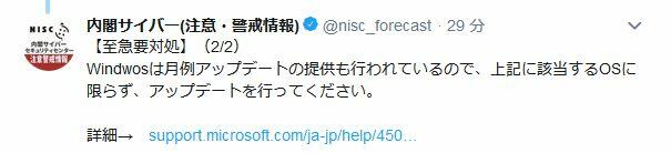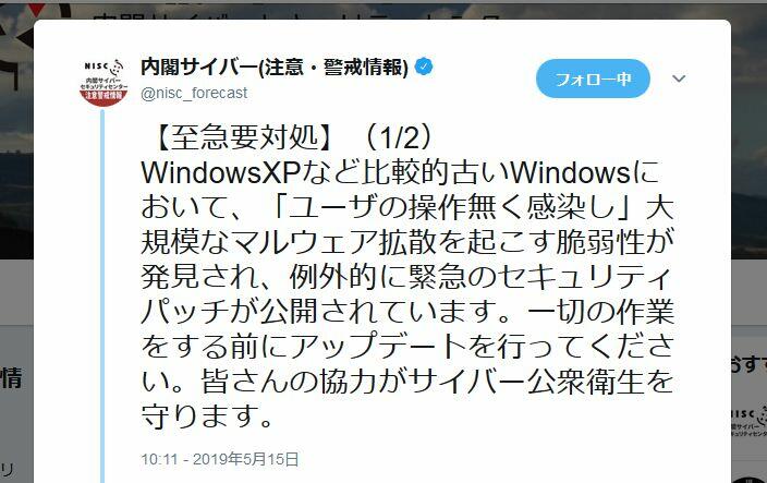 (情報提供元:twitterアカウント= @nisc_forecast 内閣サイバーセキュリティセンター[NISC] 2019年5月15日掲出)![]()