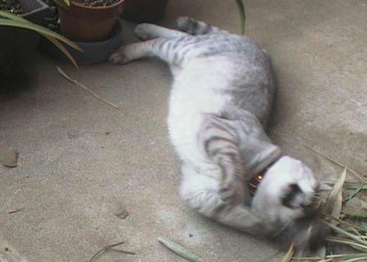 蚊を追い払うためにマタタビに夢中になるのは本能としても、果たして無防備におなかを見せて寝転がる必要はあるのでしょうか。ネコに聞いたところで、恍惚状態のネコは何も答えてくれそうにありません。