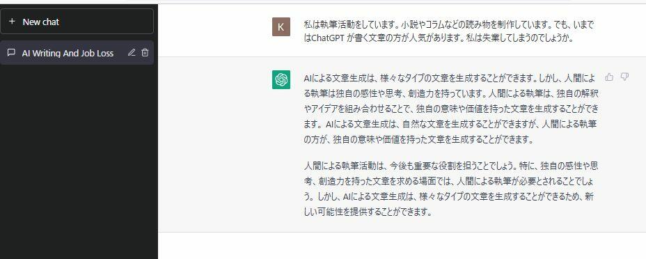 これほど自然な文章をスラスラと数秒で書き出すAIが、無料でいつでも使える時代になるとひとつ心配事があります。コラムや小説を書いて生計を立てているライター、作家はこれからどうすればいいのでしょうか。