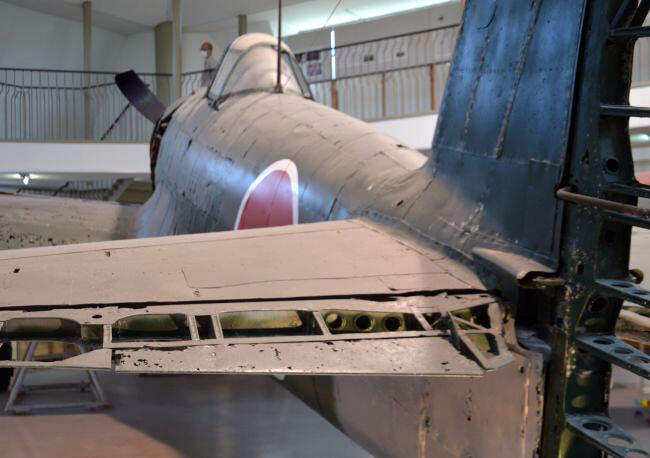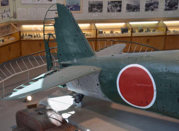 この機体は、敗戦間近の1945年7月、米軍機と激しい交戦の末、愛南町近くの海に没したもので、1979年(昭和54年)に海底から引き上げ、修復されました。今は海を見下ろす山頂の展示館に静かに翼を休めています。