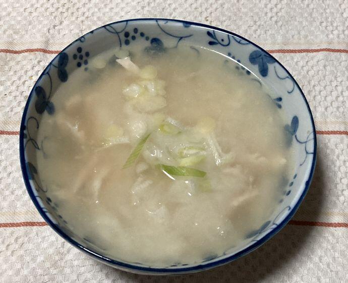 3.サラダチキンをお好みのサイズにカットして、1.のスープを加えます。