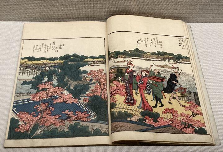 ※今も色鮮やかな挿絵。葛飾北斎『絵本隅田川 両岸一覧』(通期)※後期でページ替え(すみだ北斎美術館所蔵)