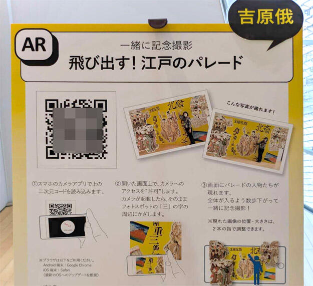 ※撮影手順はパネルに説明あり。白枠で囲った芸者達がAR画像。