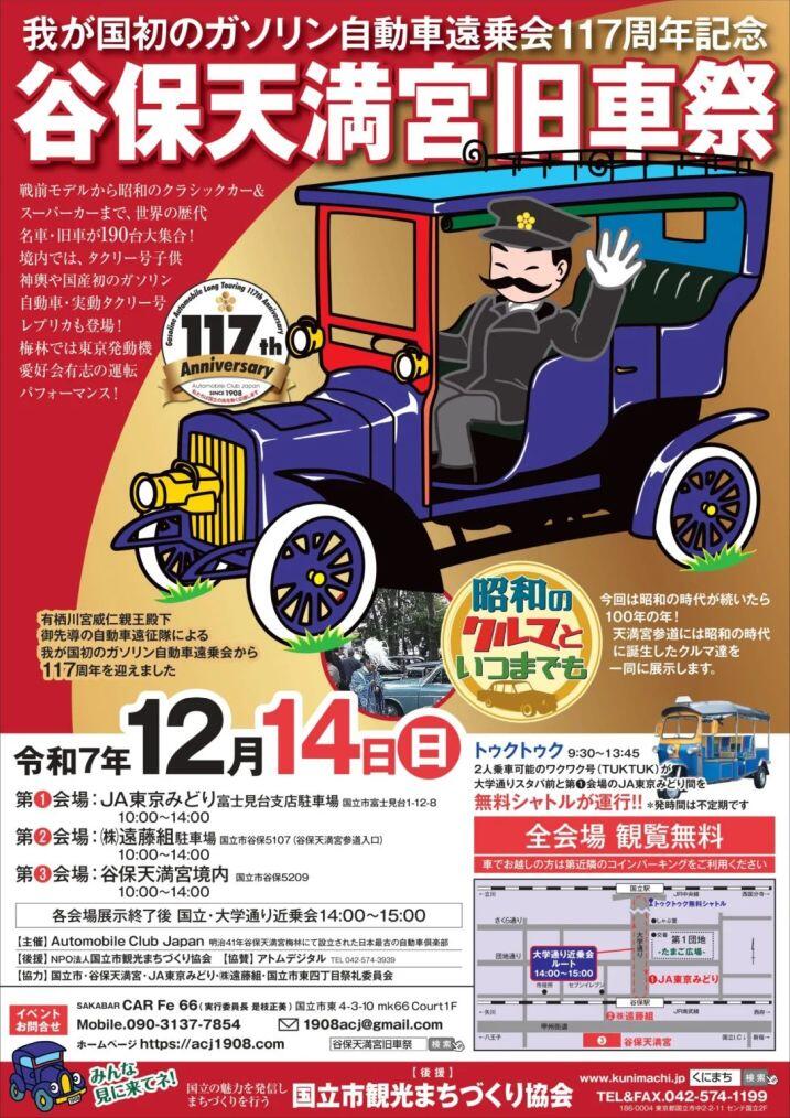 【谷保天満宮旧車祭】歴代の名車が大集合!12/14開催!タクリー号も大学通りを走ります(国立市)