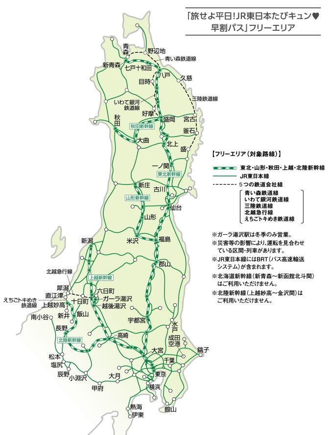 ○JR東日本=「旅せよ平日! JR東日本たびキュン早割パス」(キュンパス)・価格 1日間用 10,000円/連続する2日間用 18,000
