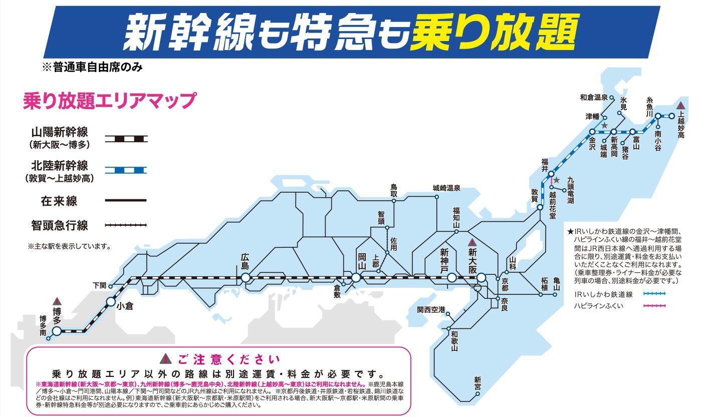 どちらの切符も新幹線・特急・普通列車が乗り放題となります。