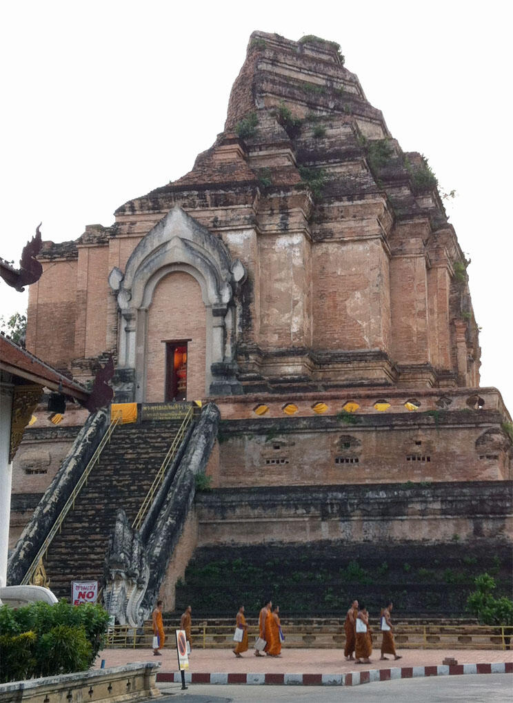 ※タイ王国・チェンマイの寺院「ワット・チェディルアン」と修行僧(筆者撮影)