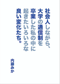 通信制大学での経験は電子書籍『社会人しながら、大学の通信生を卒業した私の中に起きたいろいろな良い変化たち。』にまとめていますので、ご興味あるかたに読んでいただければ幸いです。(作家・内藤みか(@micanaitoh))