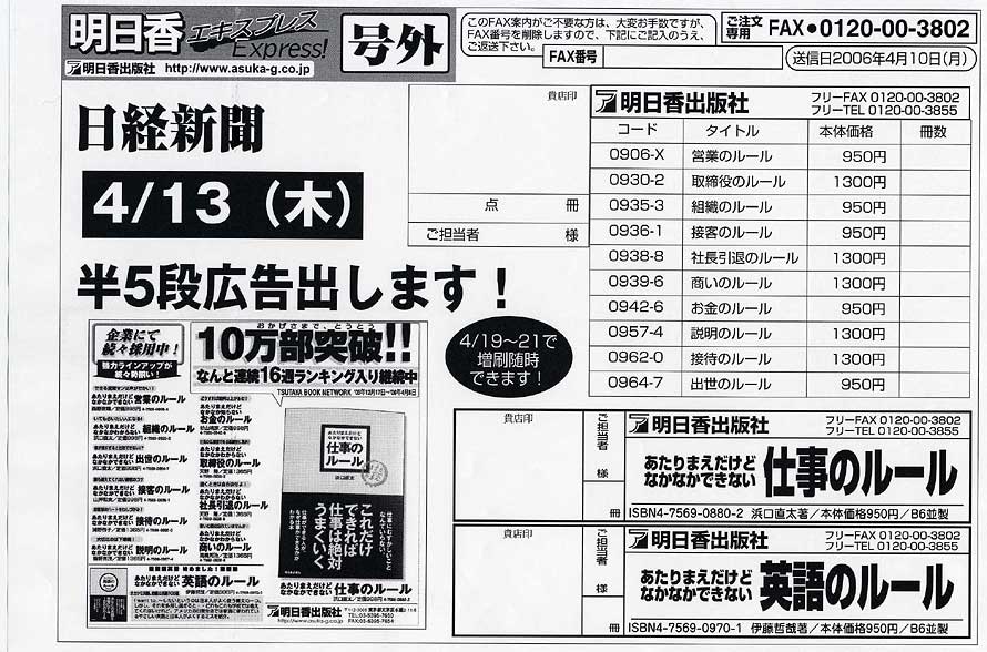 日経新聞半5段広告出します!