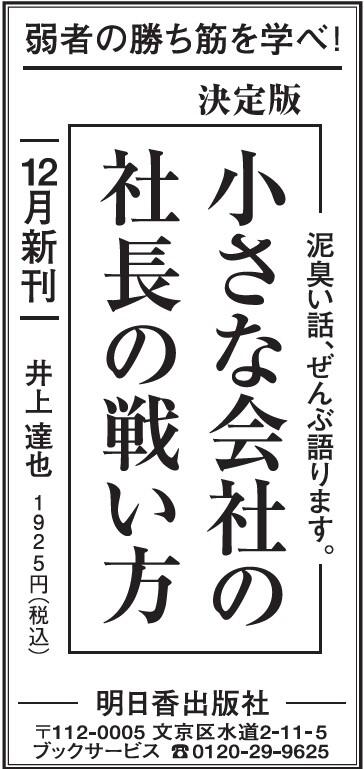 トップページ News 12/22(金)日経新聞に広告が載ります News 2023年12月17日 Tweet 12/22(金)日経新聞に広告が載ります 12月22日(金) ・サイズ:サンヤツ・載る本 「決定版 小さな会社の社長の戦い方」 < 前の記事 > 次の記事