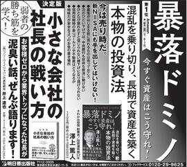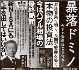 トップページ News 広告情報 News 広告情報 2024年04月09日 お知らせ 4/9毎日新聞に広告が載ります 日程:4月9日(火) サイズ:半5段 載る本:暴落ドミノ 今すぐ資産はこう守れ! 続きを読む 2024年04月07日 お知らせ 4/7毎日新聞に広告が載ります 日程:4月7日(日) サイズ:サンヤツ 載る本:「老いも孤独もなんのその 「ひとり老後」の知恵袋」 続きを読む 2024年04月05日 お知らせ ・4/5毎日新聞に広告が載ります 日程:4月5日(金) サイズ:サンヤツ 載る本:「心もカラダもラクになる 血流の整えかた」 続きを読む 2024年04月04日 お知らせ 4/4(木)産経新聞に広告が載ります 日程:4月4日(木) サイズ:半5段 載る本: ・「楽しく賢くムダ知らず 「ひとり老後」のお金の知恵... 続きを読む 2024年04月03日 お知らせ 4/3(水)に中日東京新聞に広告が載ります 日程:4月3日(水) サイズ:半5段 載る本: ・「楽しく賢くムダ知らず 「ひとり老後」のお金の知恵... 続きを読む 2024年04月03日 お知らせ ・4/3日経新聞に広告が載ります 日程:4月3日(水) サイズ:半5段 載る本: ・「暴落ドミノ 今すぐ資産はこう守れ!」 ・「決定版... 続きを読む 2024年03月30日 お知らせ ・3/30毎日新聞に広告が掲載されます 日程:3月30日(土) サイズ:サンヤツ 載る本:中学英語がおもしろいほどマスターできる本 続きを読む 2024年03月28日 お知らせ 3/28秋田魁新報社に広告が載ります 日程:3月28日(水) サイズ:半3段 載る本 ・「楽しく賢くムダ知らず 「ひとり老後」のお金の知恵... 続きを読む 2024年03月25日 お知らせ 3/26読売新聞に広告が載ります 日程:3月26日(火) サイズ:半5段 載る本:2点 ・「楽しく賢くムダ知らず 「ひとり老後」のお金... 続きを読む 2024年03月21日 お知らせ 3/23毎日新聞に広告が載ります 日程:3月23日(土) サイズ:サンヤツ 載る本:「心もカラダもラクになる 血流の整えかた」 続きを読む < 1 2 3 4 5 6 7 8 9 10 11 > 2/30