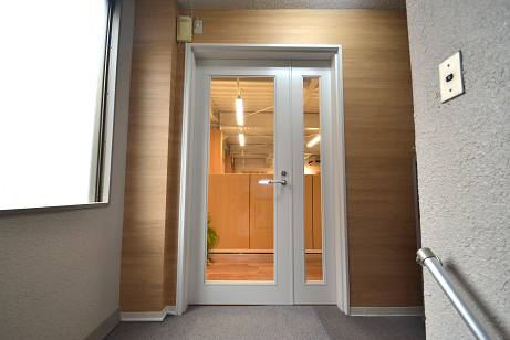 白色の清潔感とウッド調の落ち着いた雰囲気はオフィスフロアーと同様です。