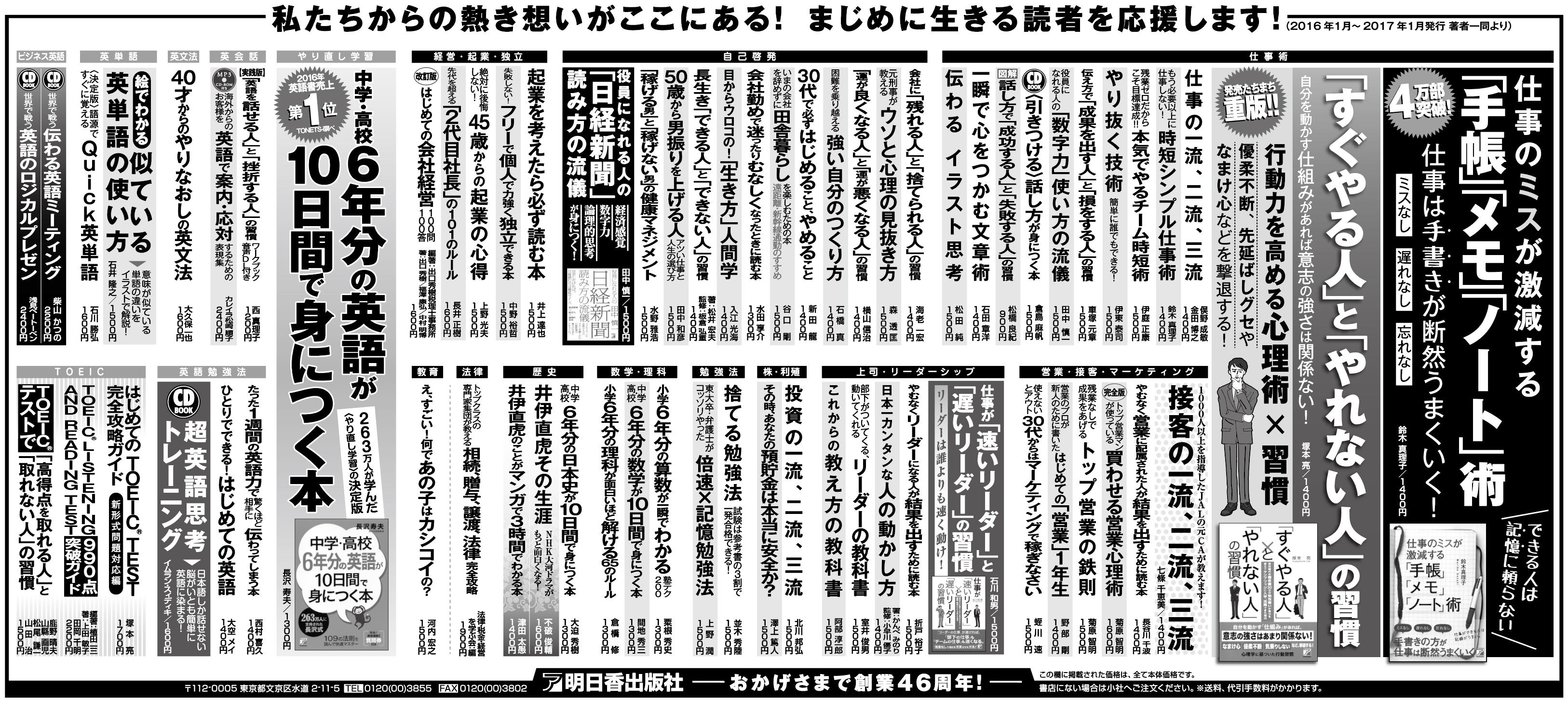 恒例の日経新聞広告を打ち、これまでお世話になった先生方の書籍を紹介しました。